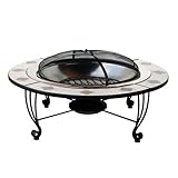 Turn the patio into a cozy outdoor living room with this Mosaic Tile Outdoor Firebowl!Gather 'round and tell ghost stories, roast marshmallows, or just enjoy the night sky.This dynamo provides warmth and ambiance while entertaining guests, and the large stainless steel construction means long lasting life!Includes the large stainless steel bowl and hand crafted mosaic tile mantel, a heavy spark arrestor that helps stop crackling embers, and a strong powder-coated wrought iron stand.It's a terrific way to pass the night, bringing friends and family close no matter what the temperature! Assembly level/degree of difficulty: Moderate.