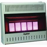 Accommodating spaces up to 1,000 square feet, this 25,000-BTU LP-gas wall heater helps provide a cozy, warm living environment. The unit's electronic piezo ignition system offers quick start-ups with one simple step (no matches, batteries, or other lighting sources required), and its top-mounted controls make it easy to adjust the heat level from low to high, depending on the amount of heat desired. Once started, the unit radiates instant infrared heat that directly heats objects in the room, which in turn warm the air. The unit runs with 99-percent efficiency, costing only pennies an hour. The unvented heater should be used as supplemental heat, in addition to a home's primary heat source; however, if the power goes out or in an emergency situation, it can be safely used as a primary heat source. For peace of mind, the heater comes equipped with an array of safety features, including a "safe watch" pilot assembly, which will automatically shut off the flow of gas if the pilot becomes extinguished; a built-in oxygen-depletion sensor that extinguishes the flame if oxygen levels drop below A.N.S.I. standards; and a pressure regulator that maintains a steady gas flow for a safe, even burn. Wall-mounting brackets and detailed instructions come included for easy installation. The wall heater measures approximately 7 by 26-3/5 by 23 inches.