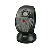 This modern black ceramic heater includes features like easy to read digital display, two heat settings, an adjustable thermostat that can be set in 1 degree increments and a programmable timer for 1-10 hour auto shut-off. Additionally, the heater will oscillate to provide wide area heating and the remote control make it easy to adjust the temperature without getting up. Safety features include a tip-over switch that disables the unit in the event that it is tipped over, flame resistant plastic and overheat protection. This unit also features a SafeGuard Alert badge that monitors the grille and warns when it is hot.Automatic overheat shut-off Overheat back-up fuse Back-up thermal circuit breaker Motor thermal cut-off fuse Flame resistant rated plastic housing Cool-touch plastic housing Recessed handle for easy carrying